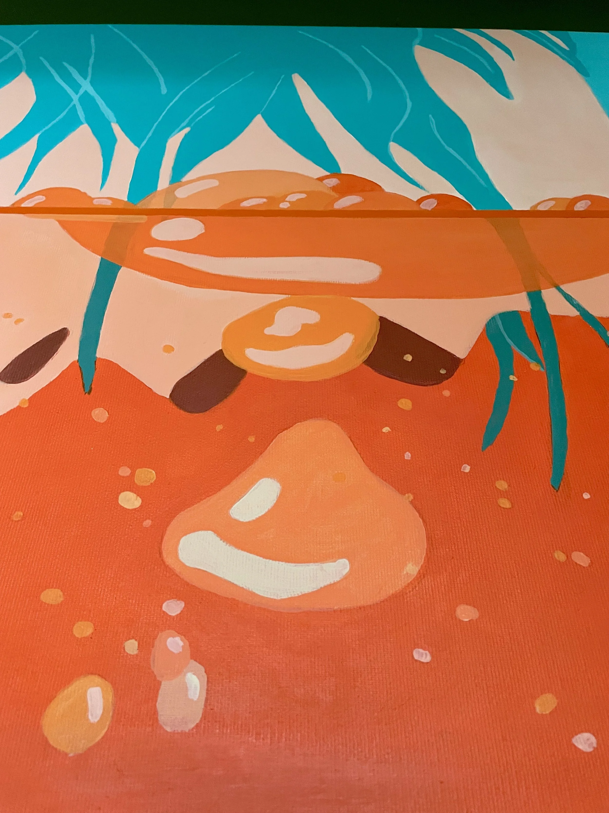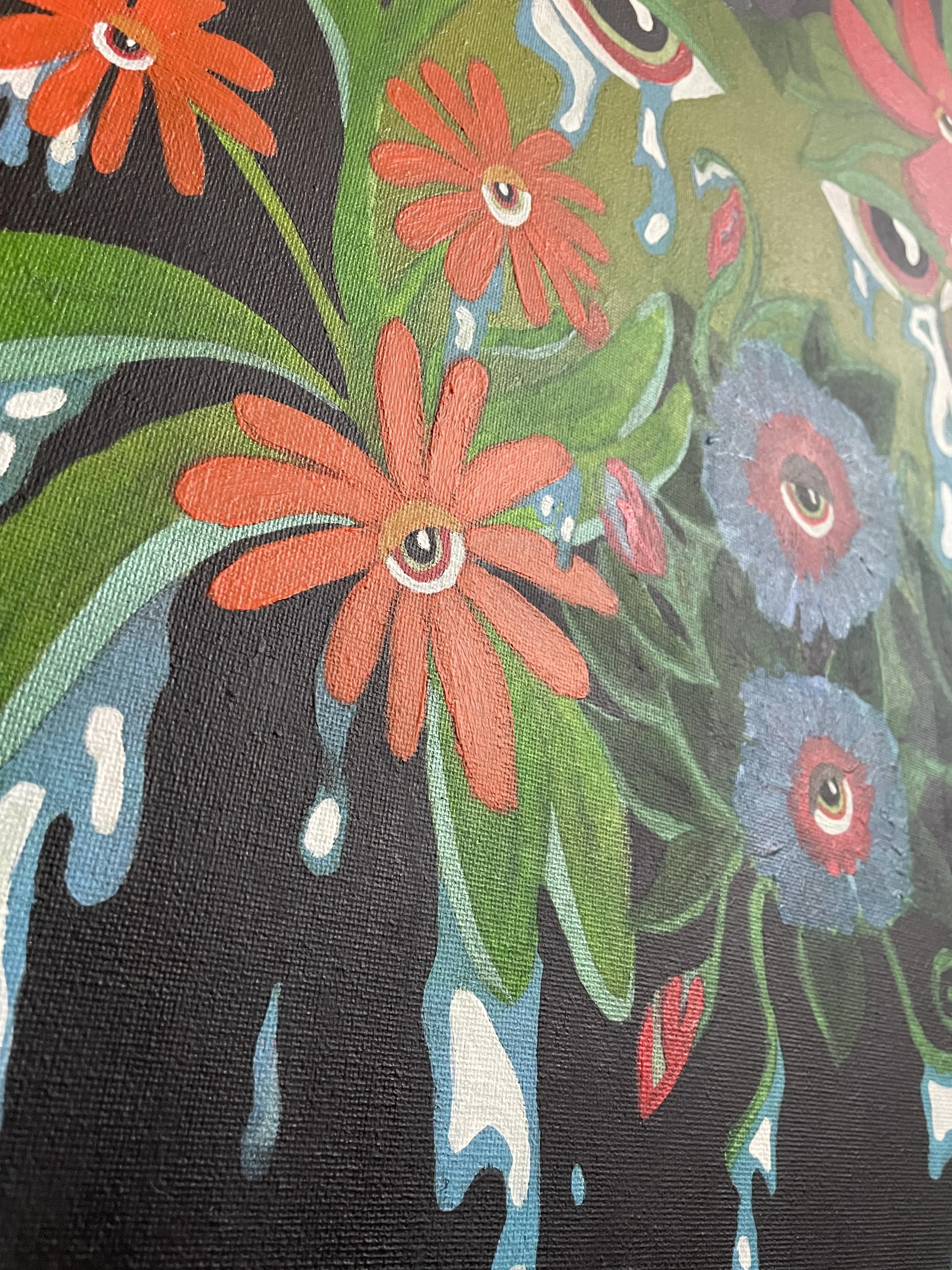 Material: Acrylic on Canvas, Styrofoam, Silicon Paint, hot glue